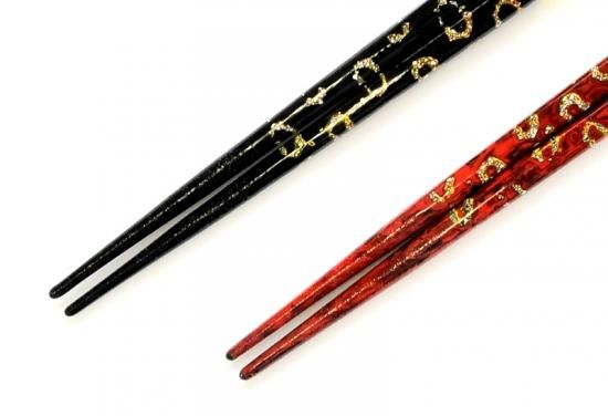 あわび貝や卵殻を使って海底の様をお箸で表したのが若狭塗の始まりといわれています。工程のなかに人工の塗料などを使い気軽にお使いいただけるお箸を作りました。